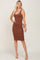 A ribbed knit dress featuring a scoop neckline and double lined.