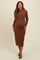 Brown Shimmer Mesh Long Sleeve Ruched Maternity Midi Dress