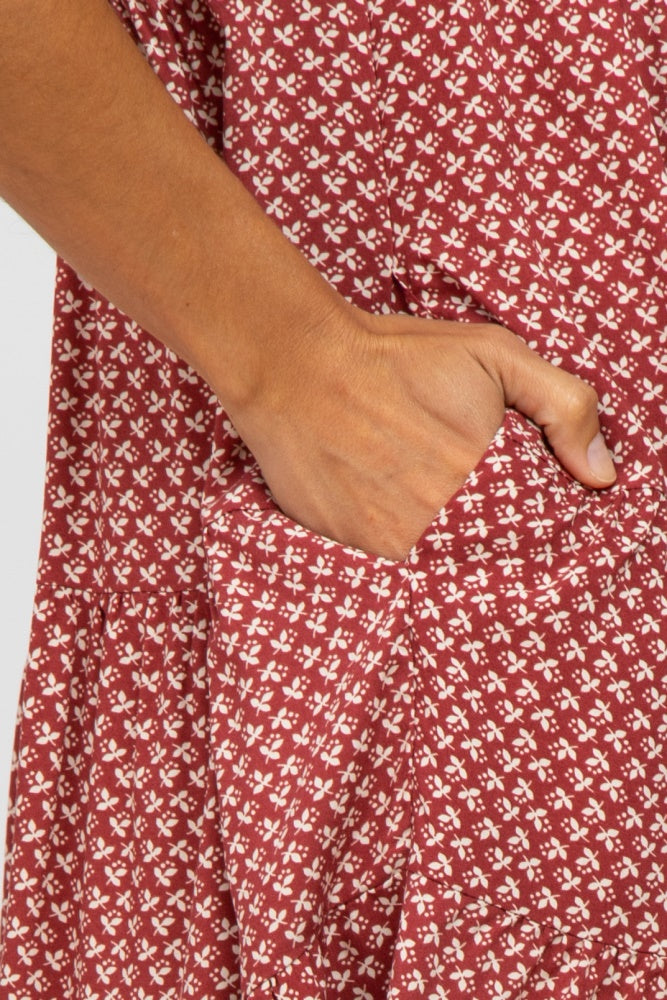 Burgundy Leaf Print Button Front Dress