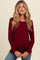 Burgundy Ribbed Knit Long Sleeve Lettuce Hem Maternity Top