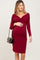 Burgundy Ruched Off Shoulder Long Sleeve Maternity Dress