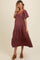 Burgundy Sweetheart Neck Short Puff Sleeve Tiered Maternity Midi Dress