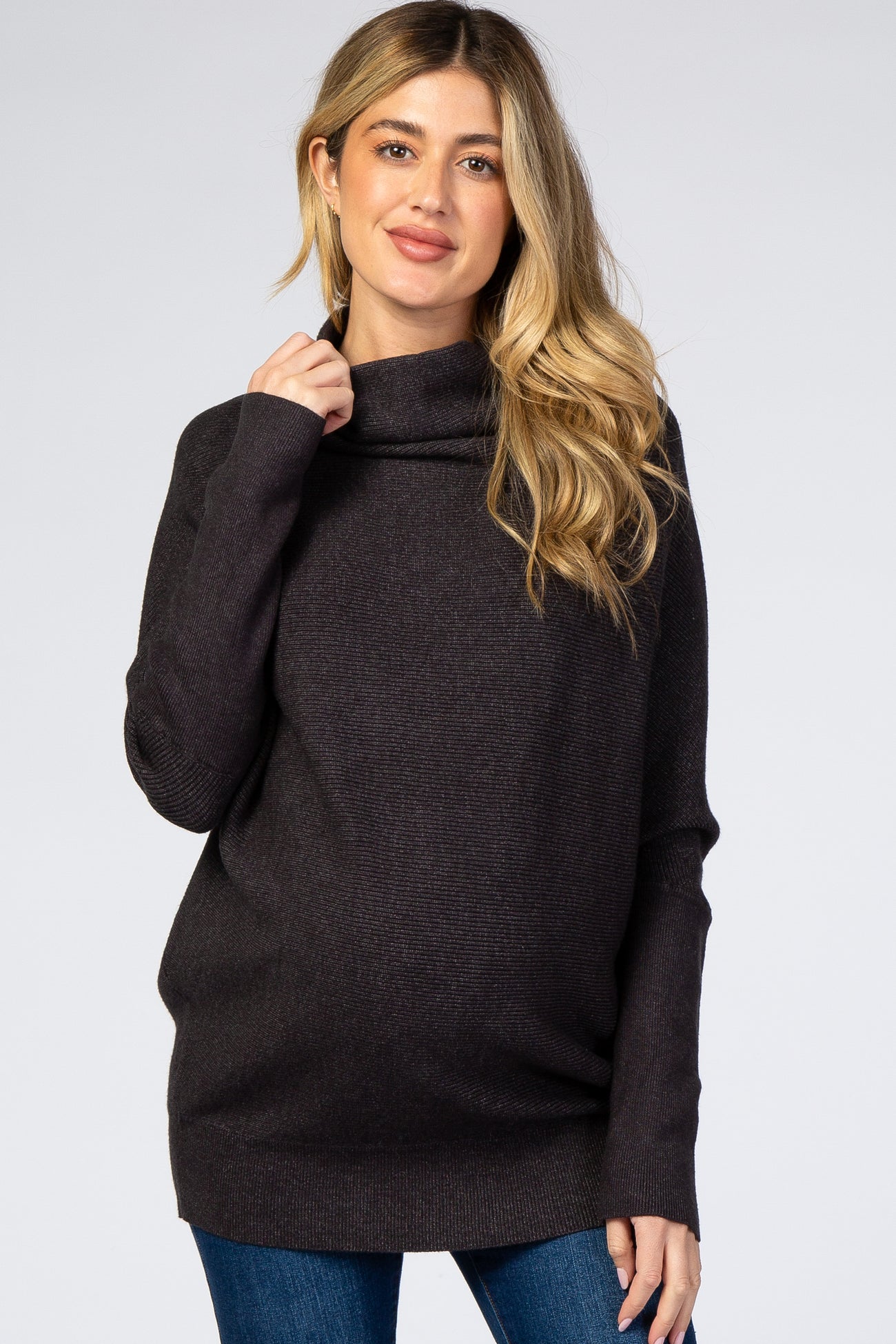 Charcoal Funnel Neck Dolman Sleeve Maternity Sweater