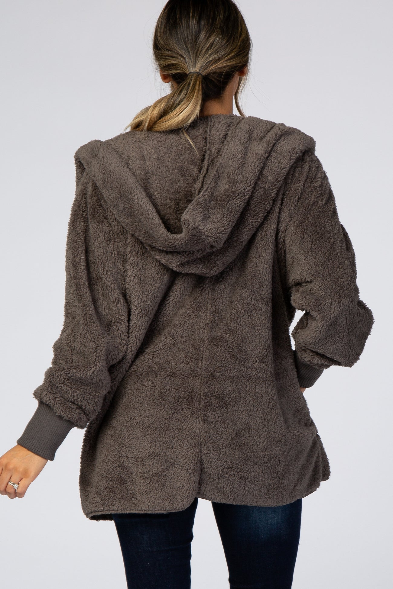 Charcoal Fuzzy Hooded Long Sleeve Jacket