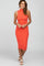 A ribbed knit midi dress with a mock neck and a bodycon fit.