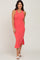 Details A solid ribbed sleeveless midi dress with a round neckline and two side slits. Content + Care