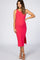 A ribbed knit maternity midi dress featuring a halter neckline and a bottom slit opening.