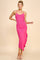 Fuchsia Ruched Ruffle Detail Sleeveless Midi Dress