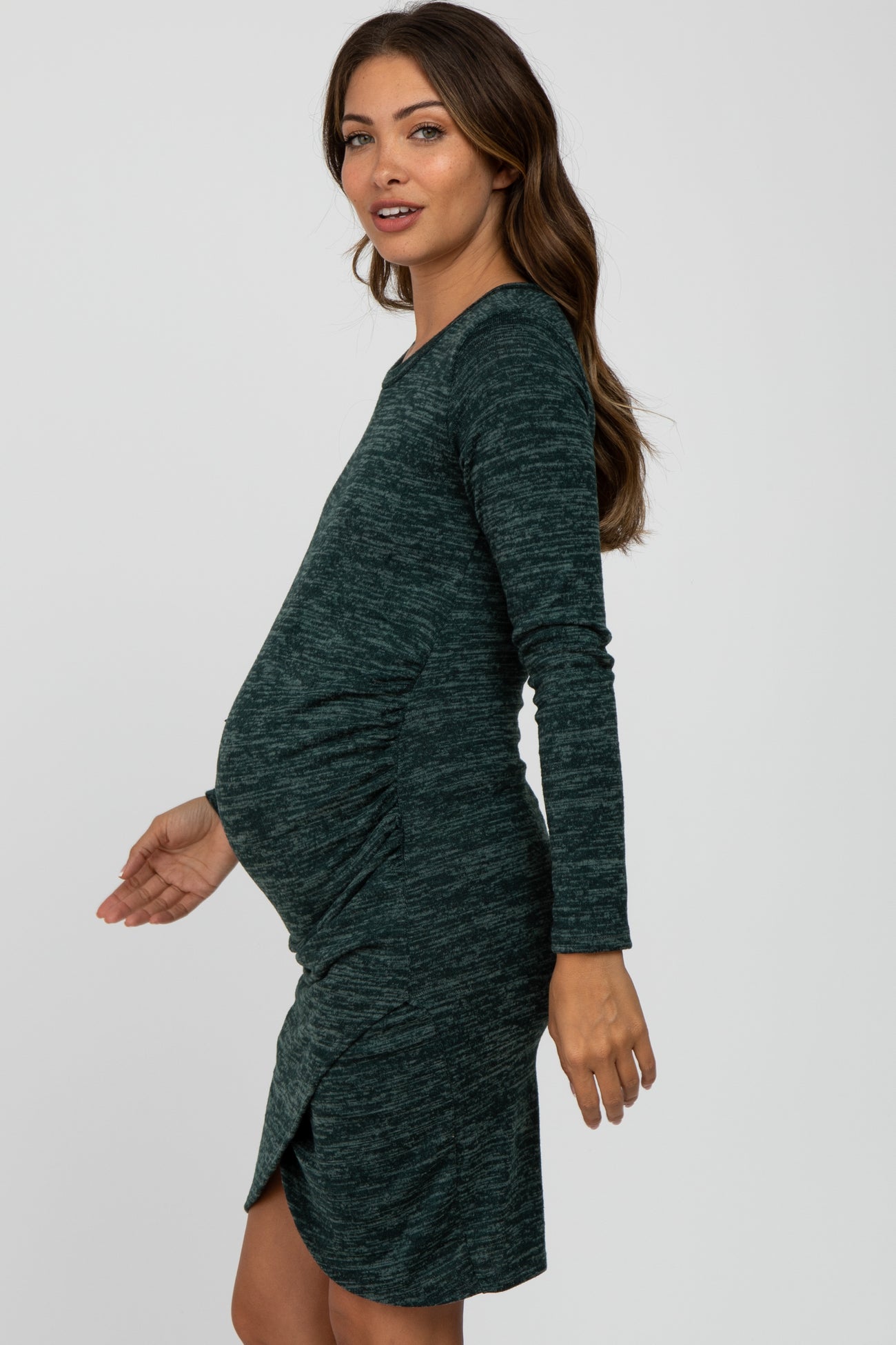 Green Heathered Ruched Tulip Hem Maternity Dress