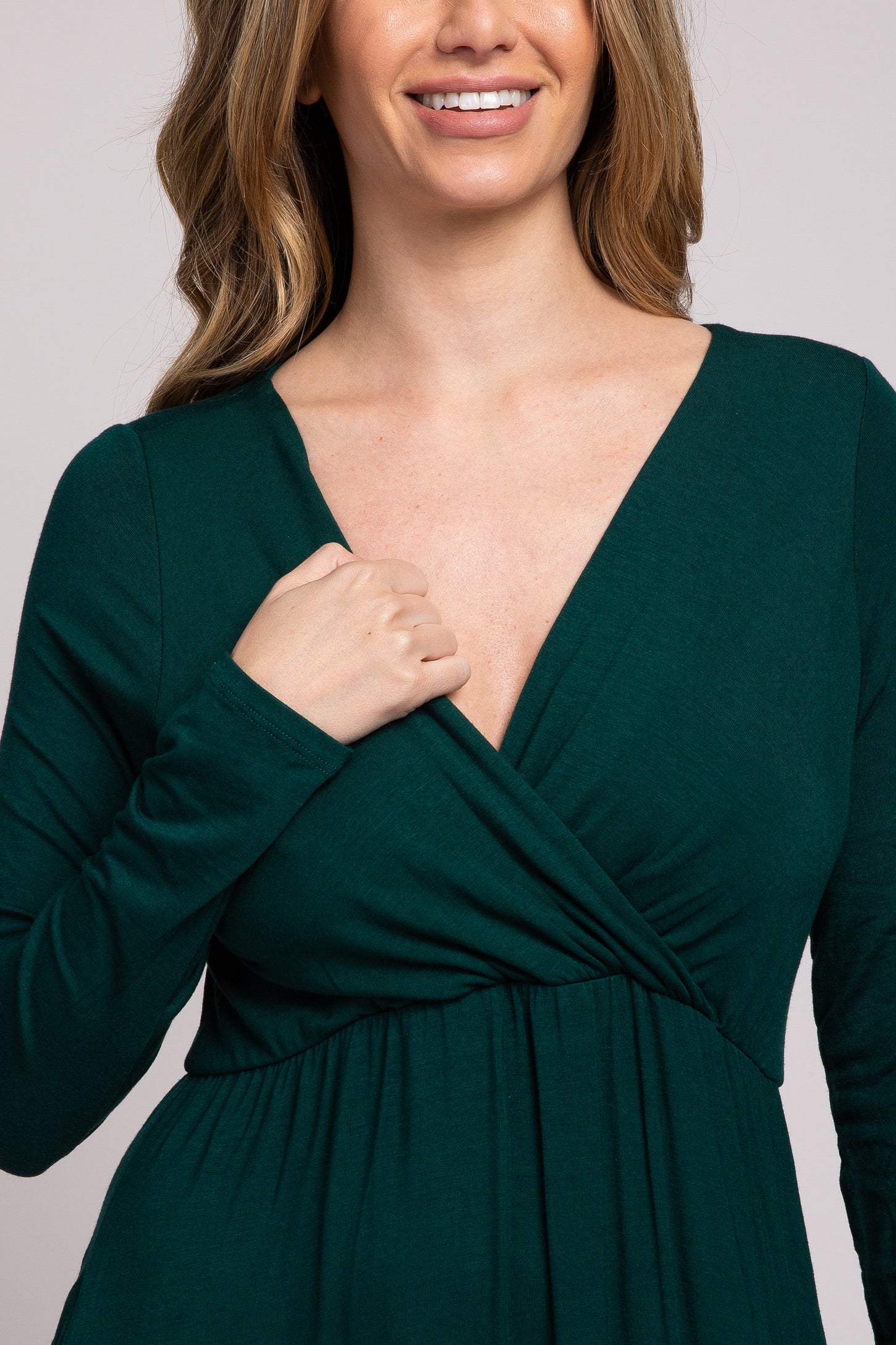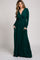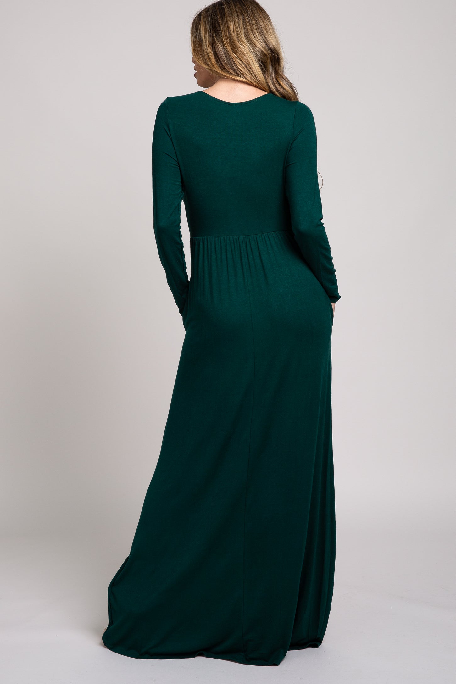 A single hued maxi dress featuring long sleeves and a v-neckline.