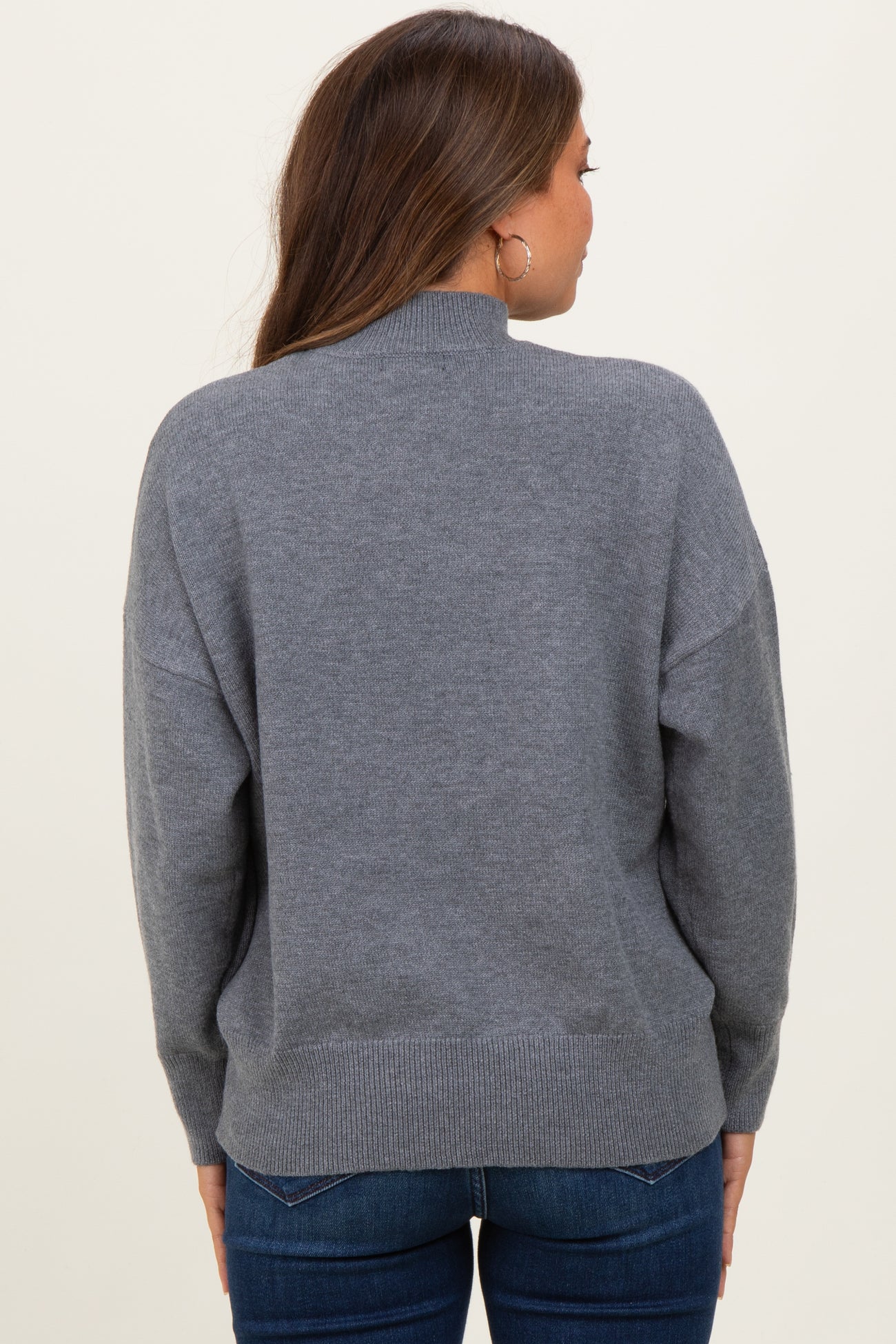 Stay cozy and stylish throughout your pregnancy with our Grey Front Seam Mock Neck Maternity Sweater. Crafted from soft, breathable fabric, this sweater offers exceptional comfort for your growing bump. The mock neck design provides gentle warmth, while the front seam adds a flattering touch. Featuring a relaxed fit and extra stretch, it adjusts beautifully as your belly grows. Perfect for layering with your favorite maternity jeans or leggings, this versatile sweater is a must-have for cooler days. Embrace comfort and chic maternity style effortlessly with this timeless wardrobe essential. Easy care and durable for everyday wear.