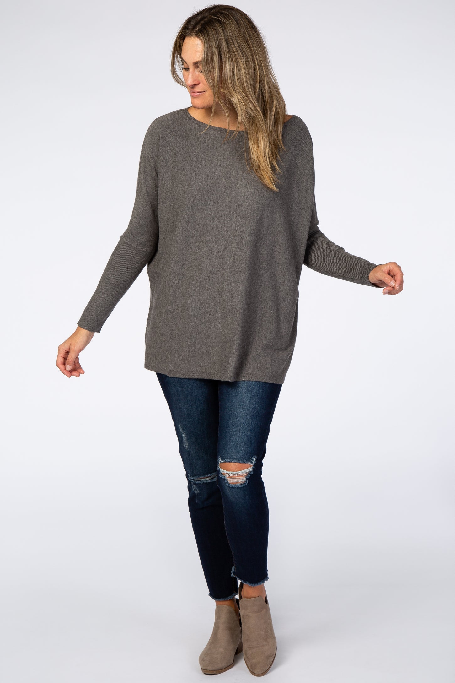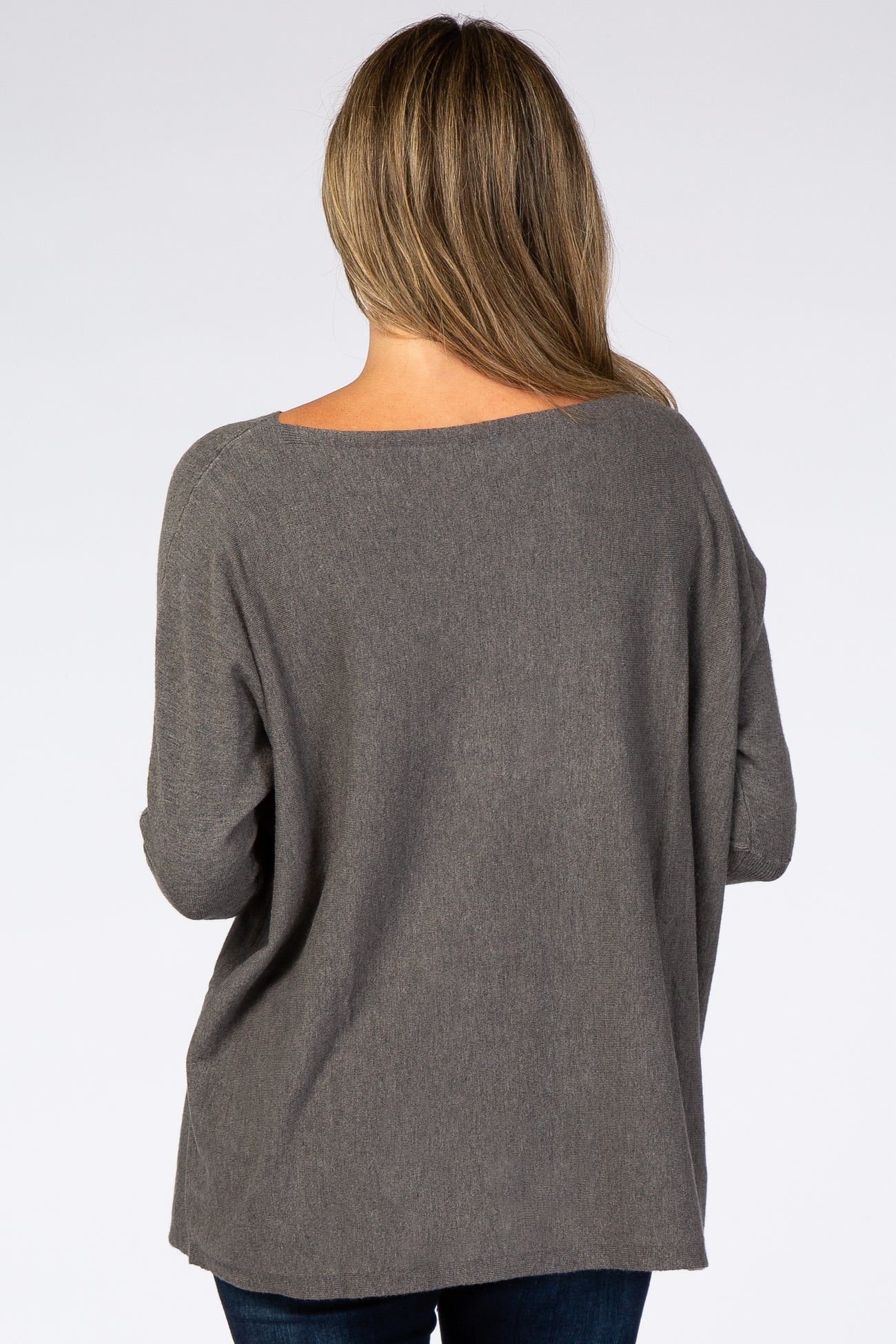 Grey Soft Knit Boatneck Dolman Sleeve Sweater