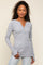 A fitted top featuring front buttons, long sleeves and a v-neckline.