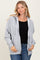 A heathered sweater featuring a front zipper closure, a drawstring hood, long raglan sleeves, and side pockets. Fleece lined.