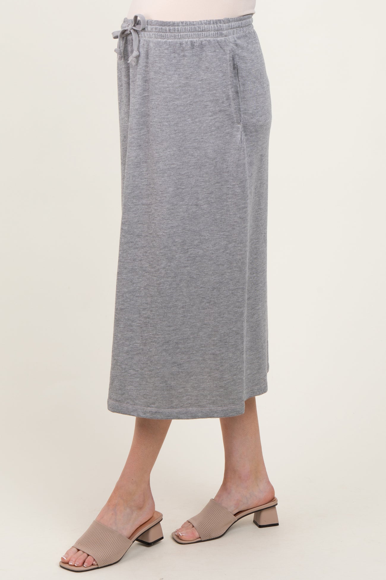Heather Grey Terry Drawstring Maternity Midi Skirt