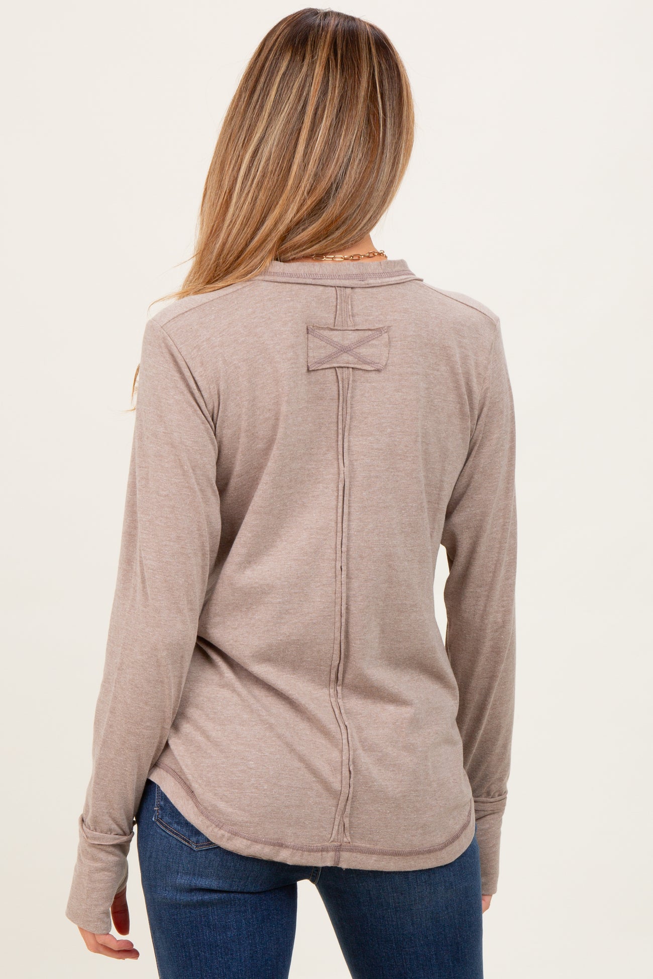 Heather Mocha Long Sleeve Exposed Seam Maternity Top