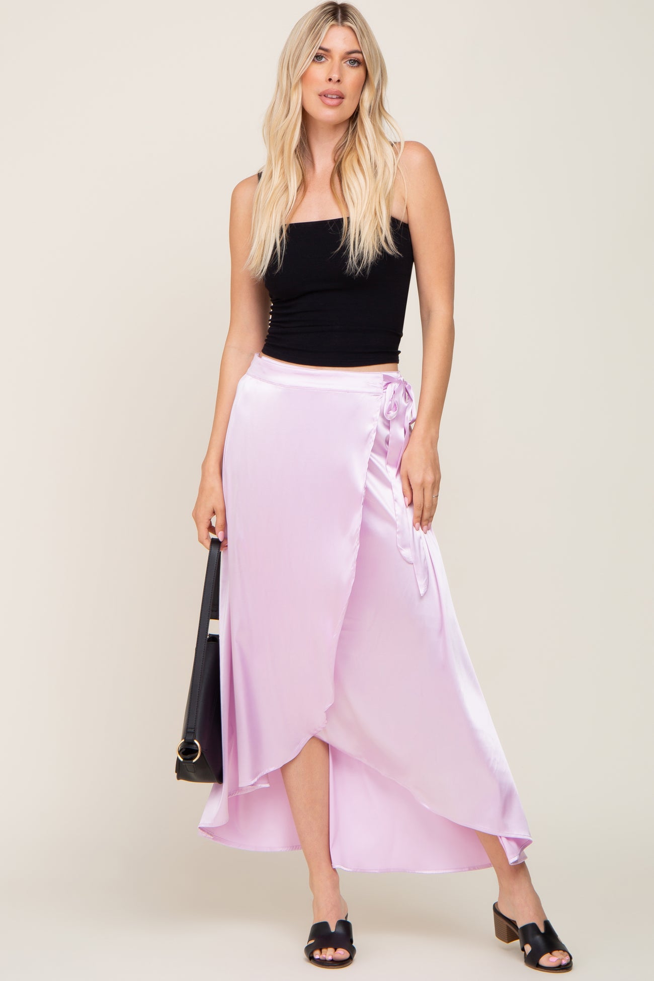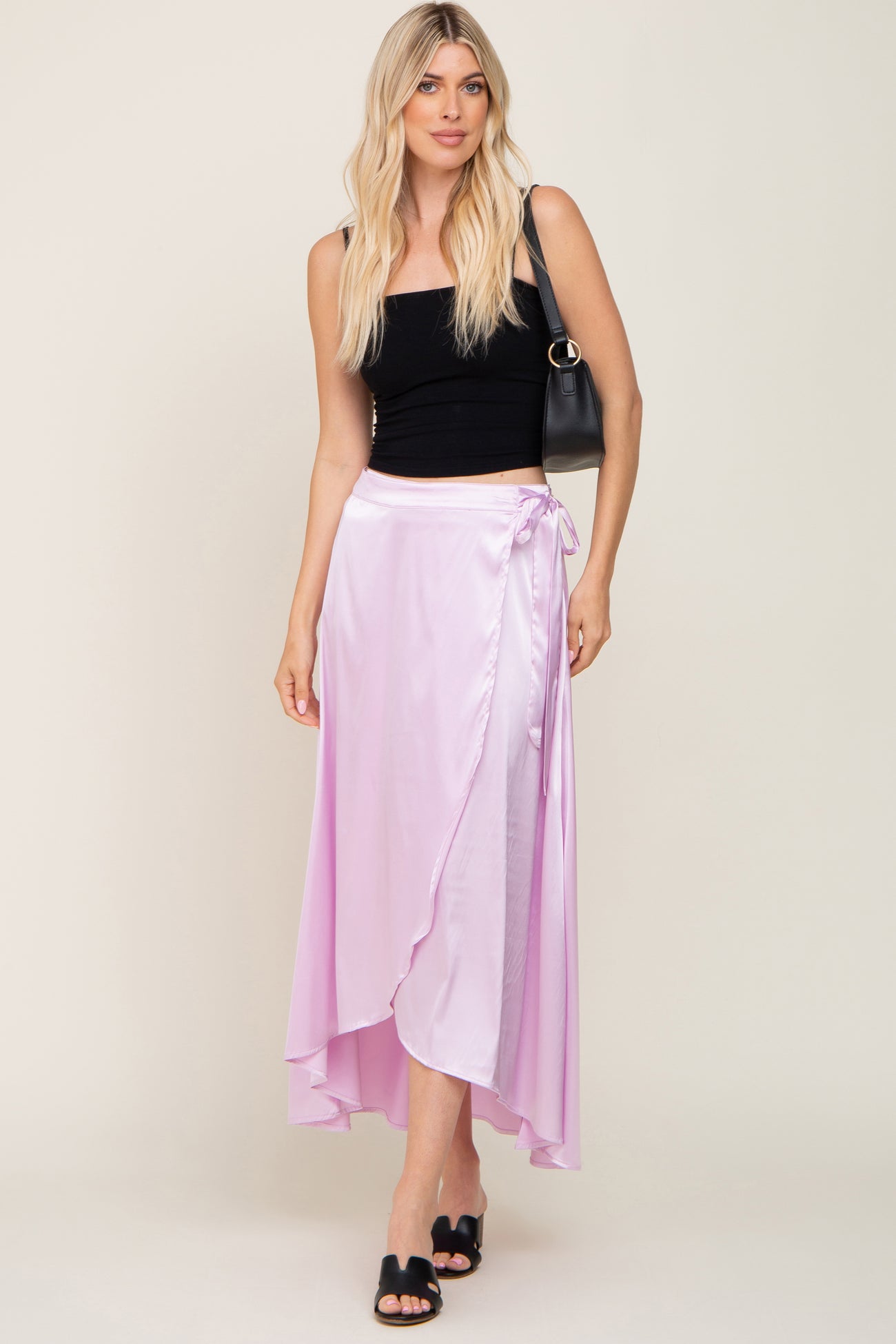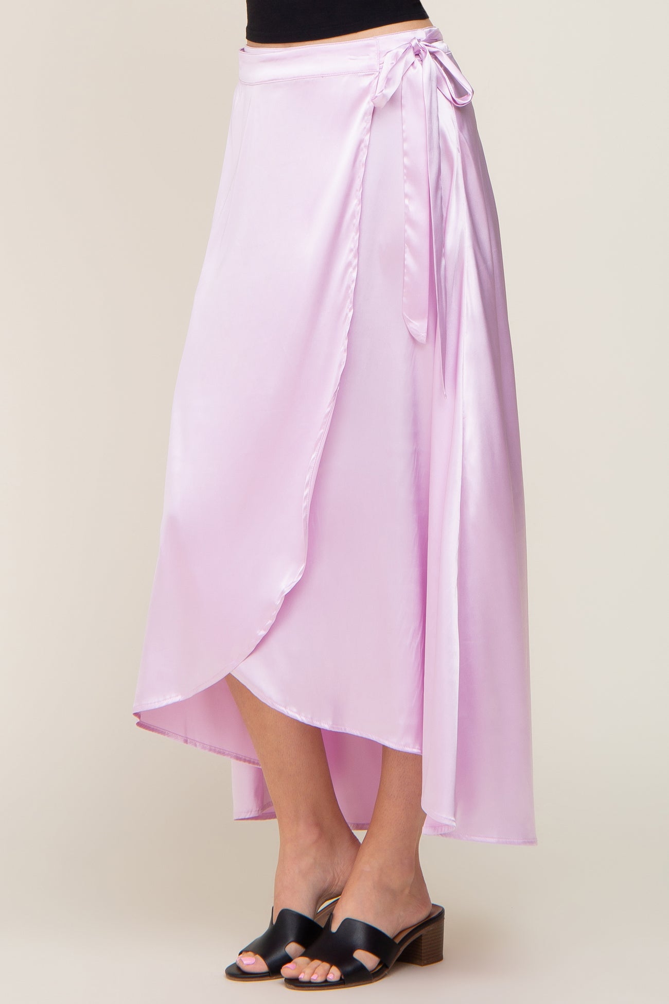 Lavender Hi-Lo Satin Wrap Skirt