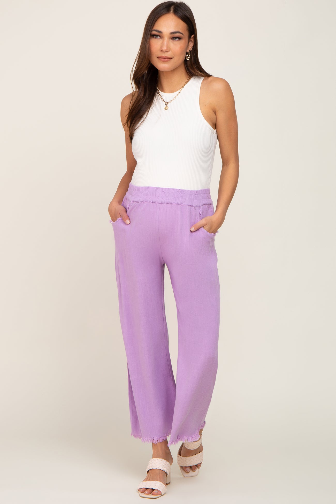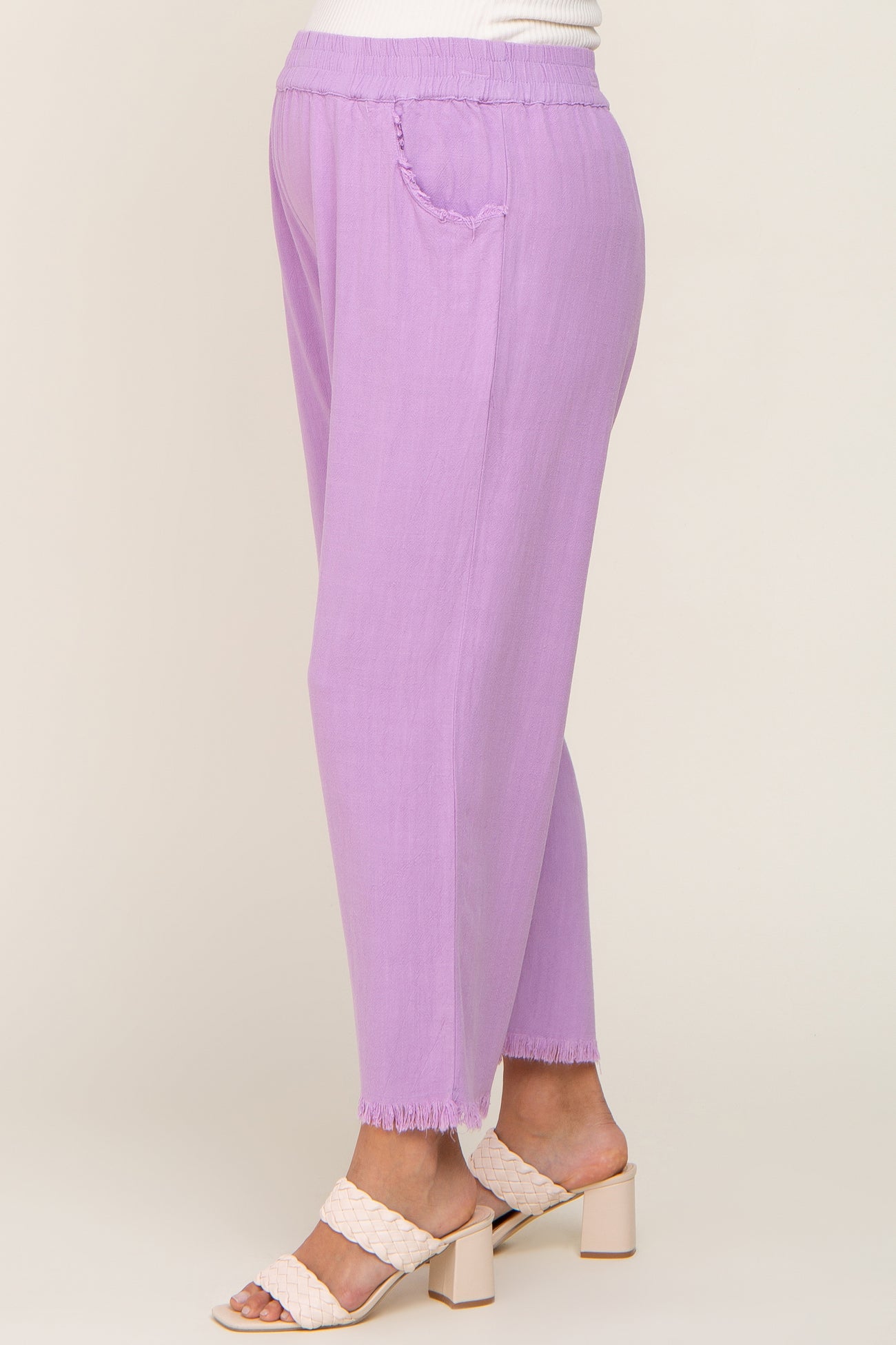 Lavender Linen Frayed Hem Crop Maternity Pants