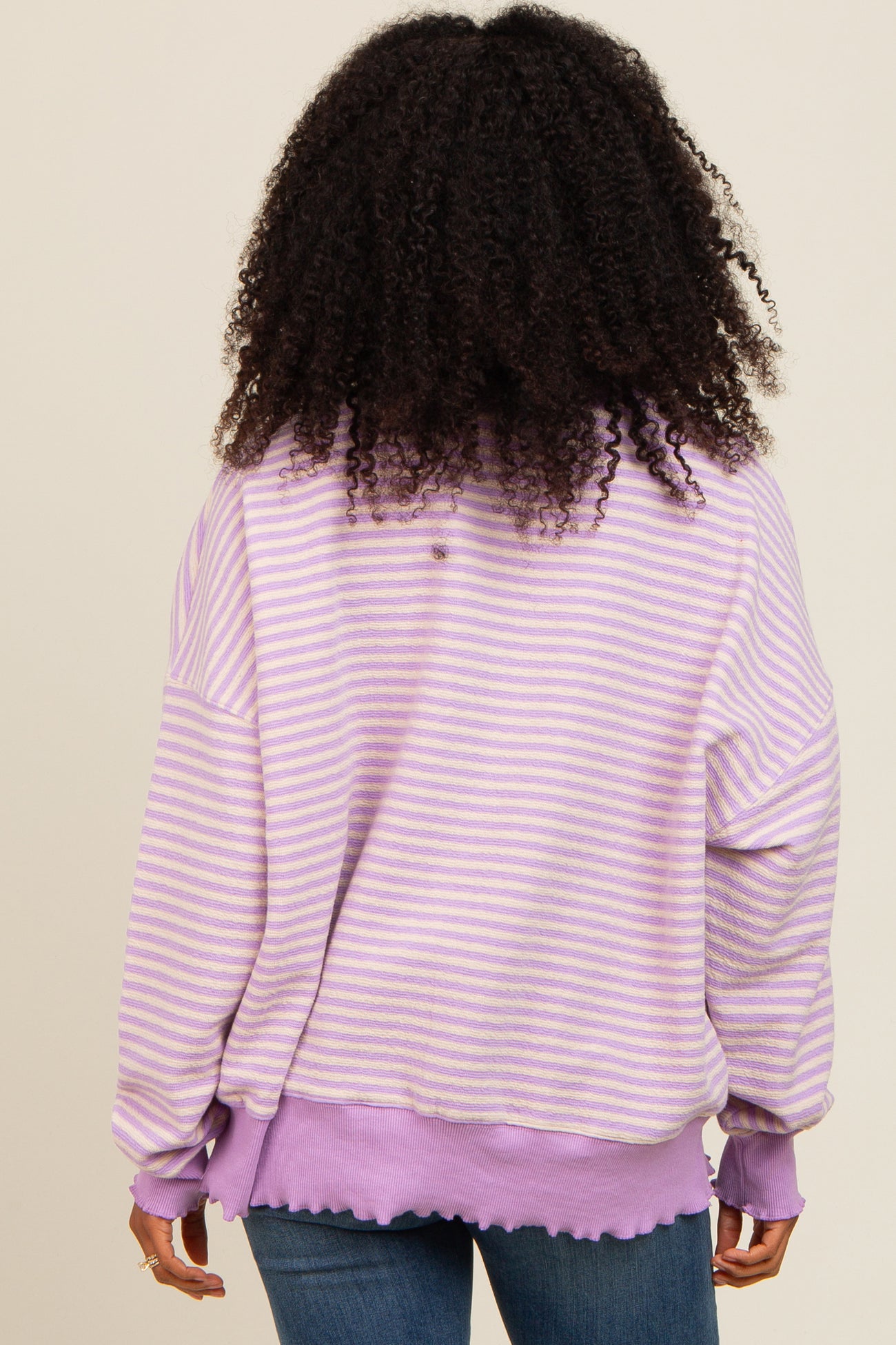 Lavender Striped Ruffle Hem Long Sleeve Top