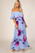 Details A floralmaxi dress featuring a fold-over off shoulder neckline. Content + Care