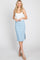 A solid hue, ribbed skirt featuring an elastic waistband and a side slit.