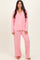 Light Pink Button Down Top Wide Leg Pant Pajama Set