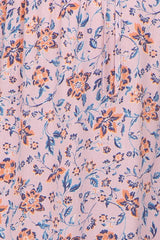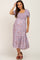 Mauve Floral Smocked Sweetheart Neck Maternity Midi Dress