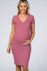 Mauve Ribbed Maternity Dress