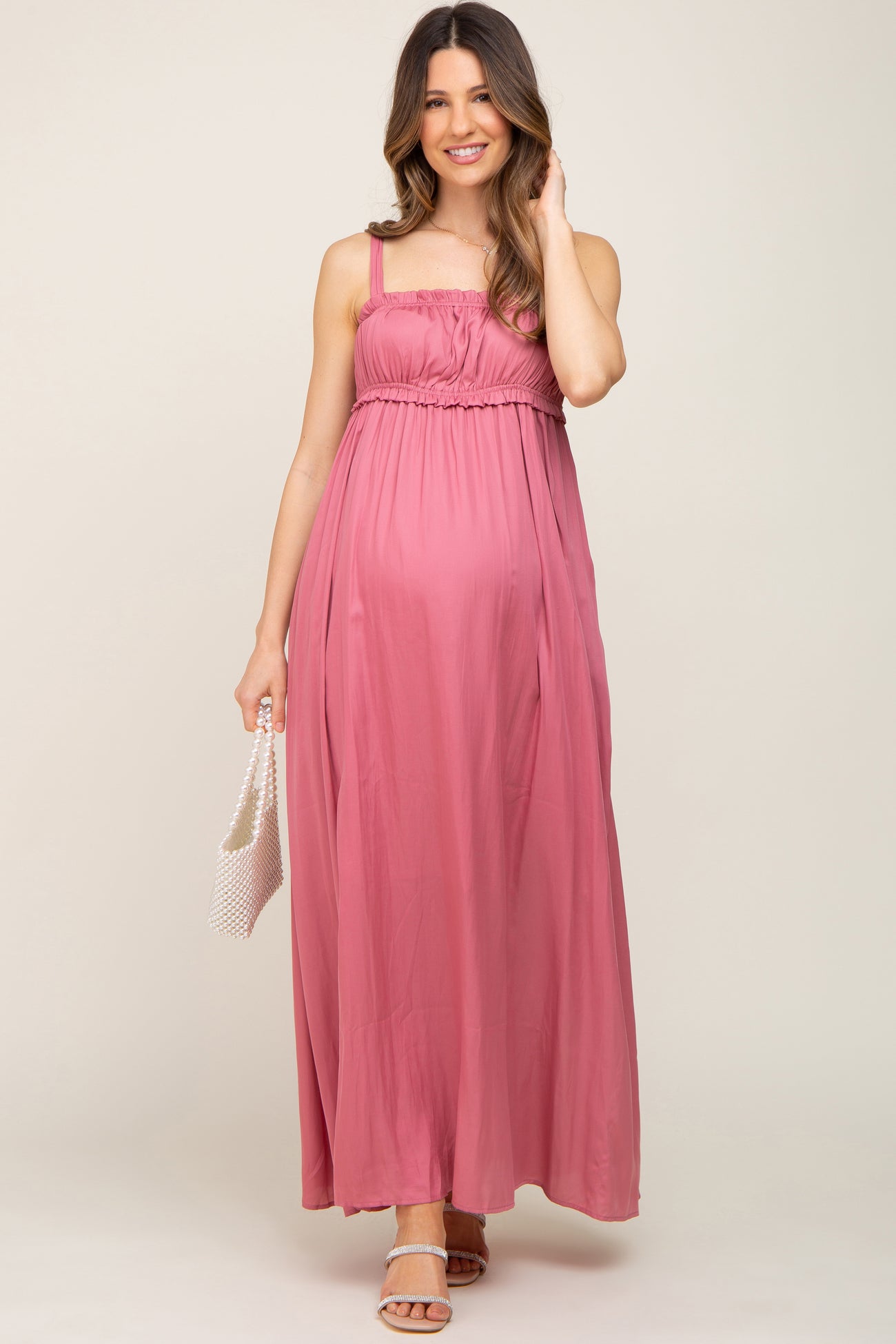 Mauve Shirred Sleeveless Maternity Maxi Dress