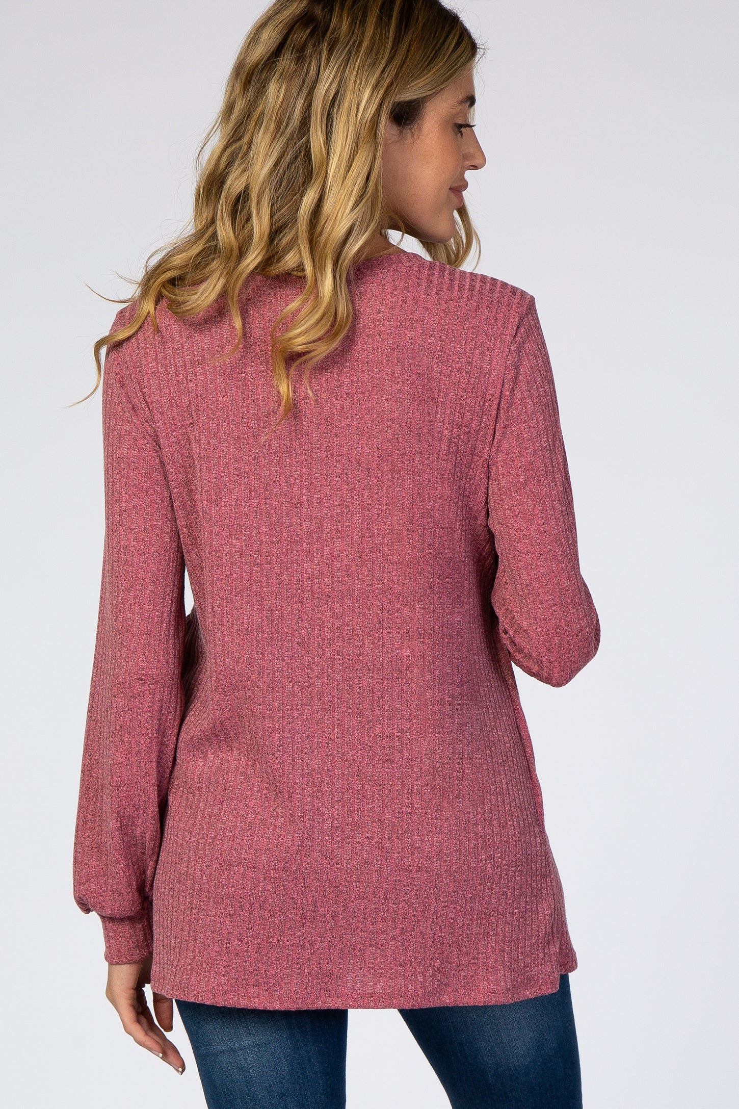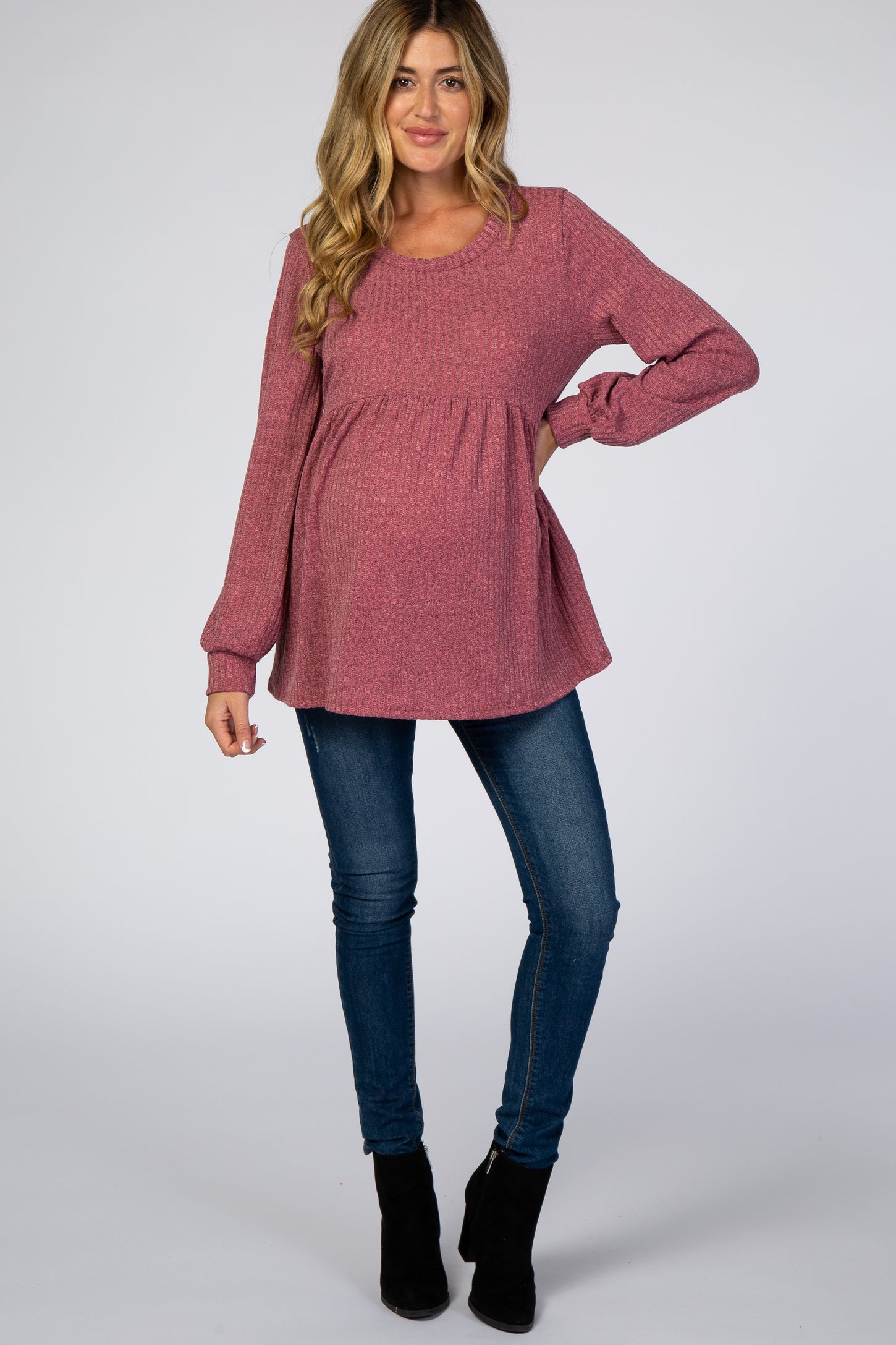 Mauve Textured Knit Babydoll Long Sleeve Maternity Top
