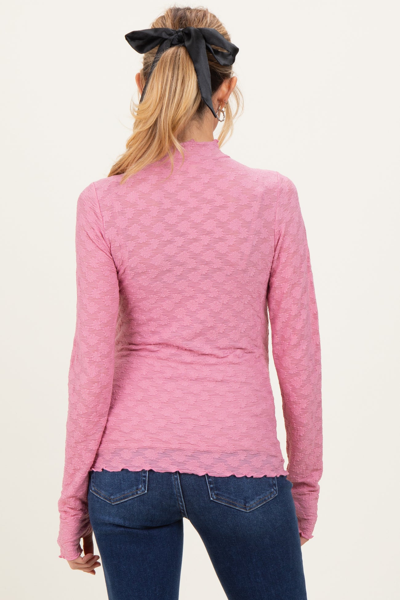 Mauve Thumbhole Sleeves Mock Neck Lace Maternity Top