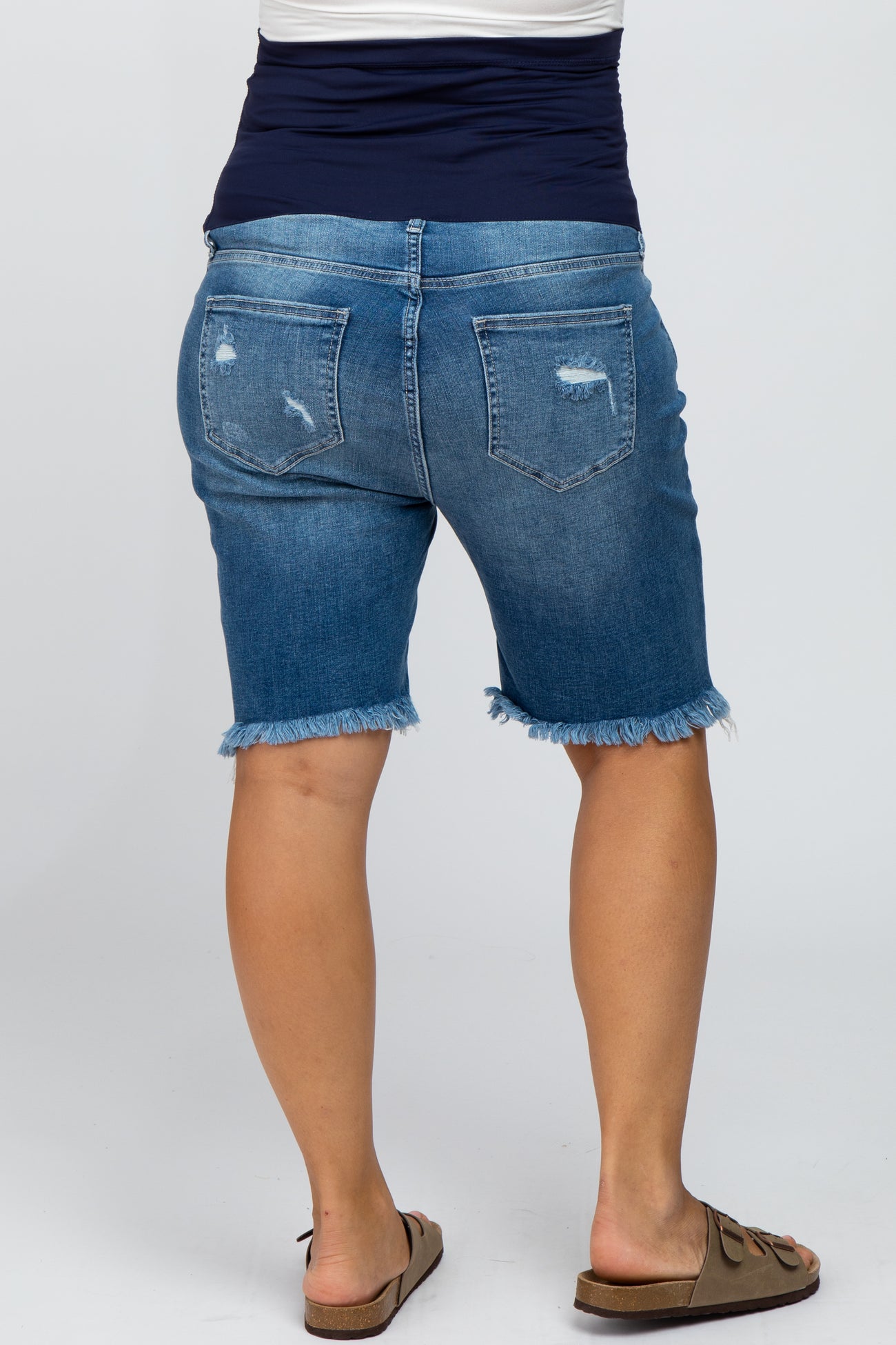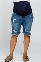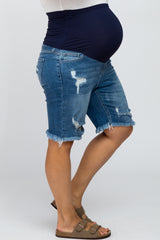 Medium Wash Distressed Denim Plus Maternity Shorts