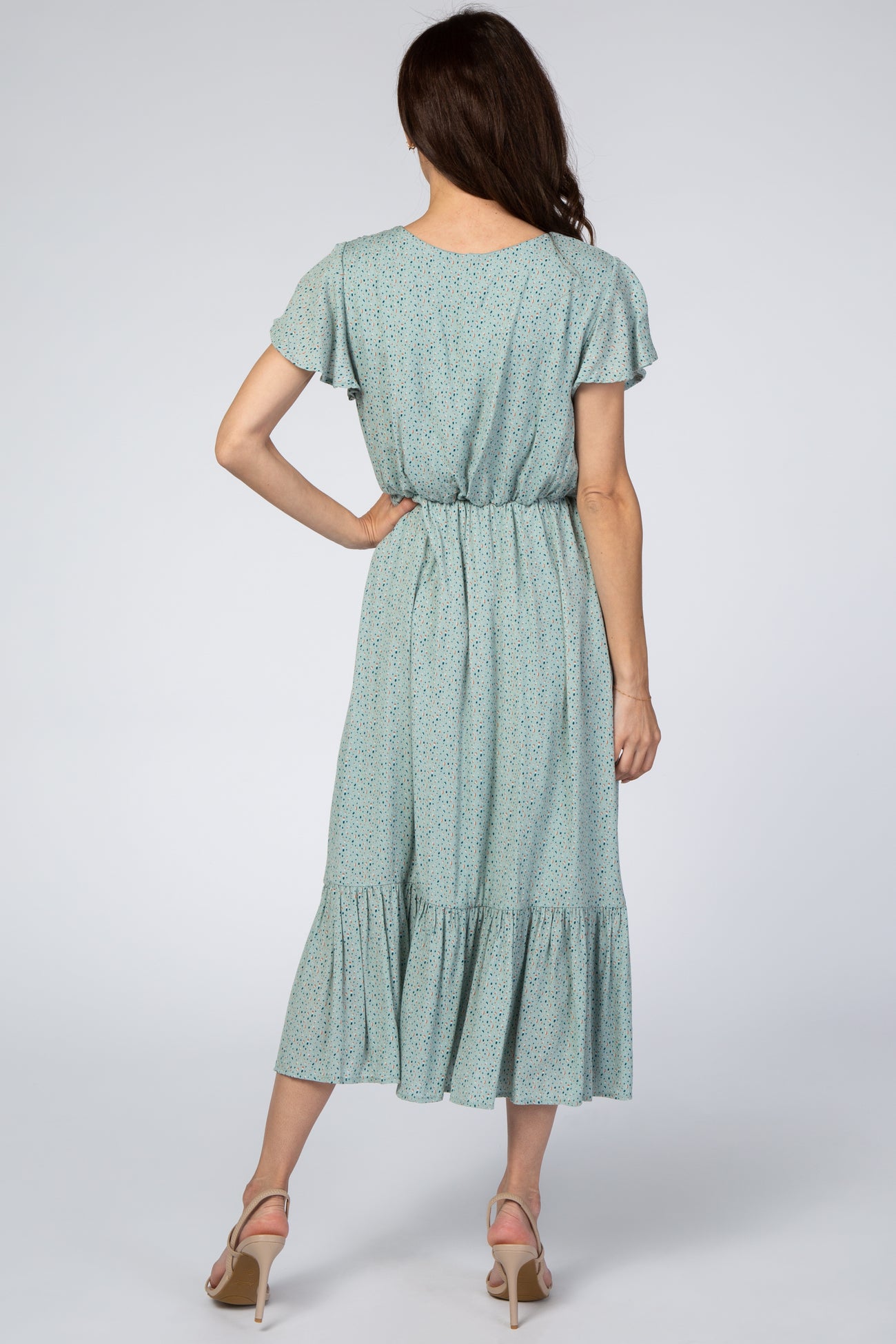 Mint Dot Print Ruffle Midi Dress