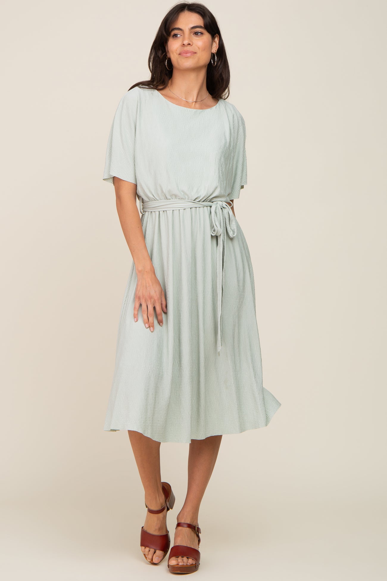 Mint Green Crinkle Knit Tie Waist Short Sleeve Dress