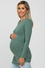 Mint Soft Knit Button Shoulder Ruched Side Maternity Top