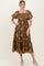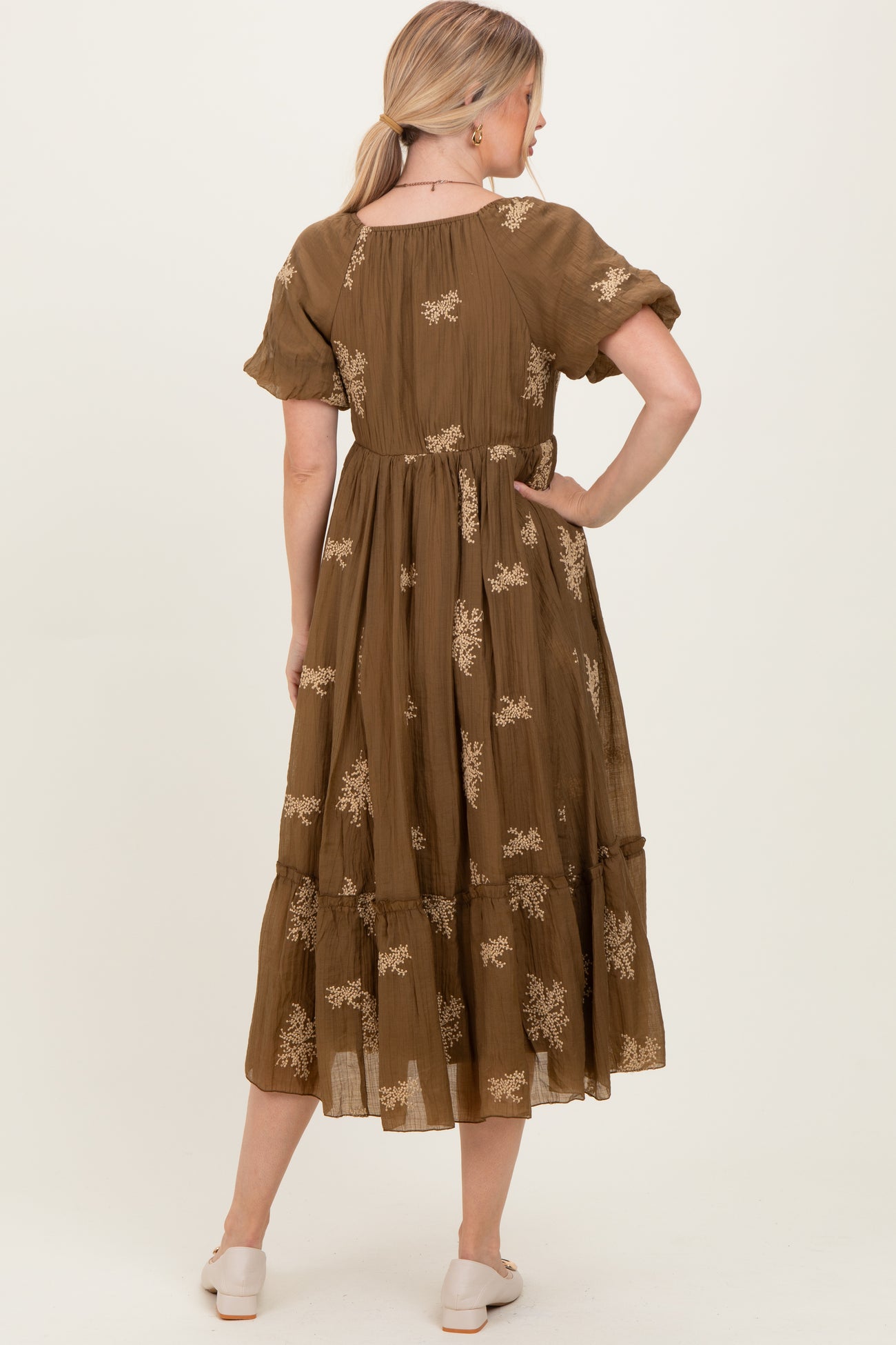 Mocha Floral Embroidered Puff Sleeve Midi Dress