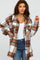 A brushed plaid print over shirt featuring long sleeves, a button down front, front pockets and a hi-low round hem.