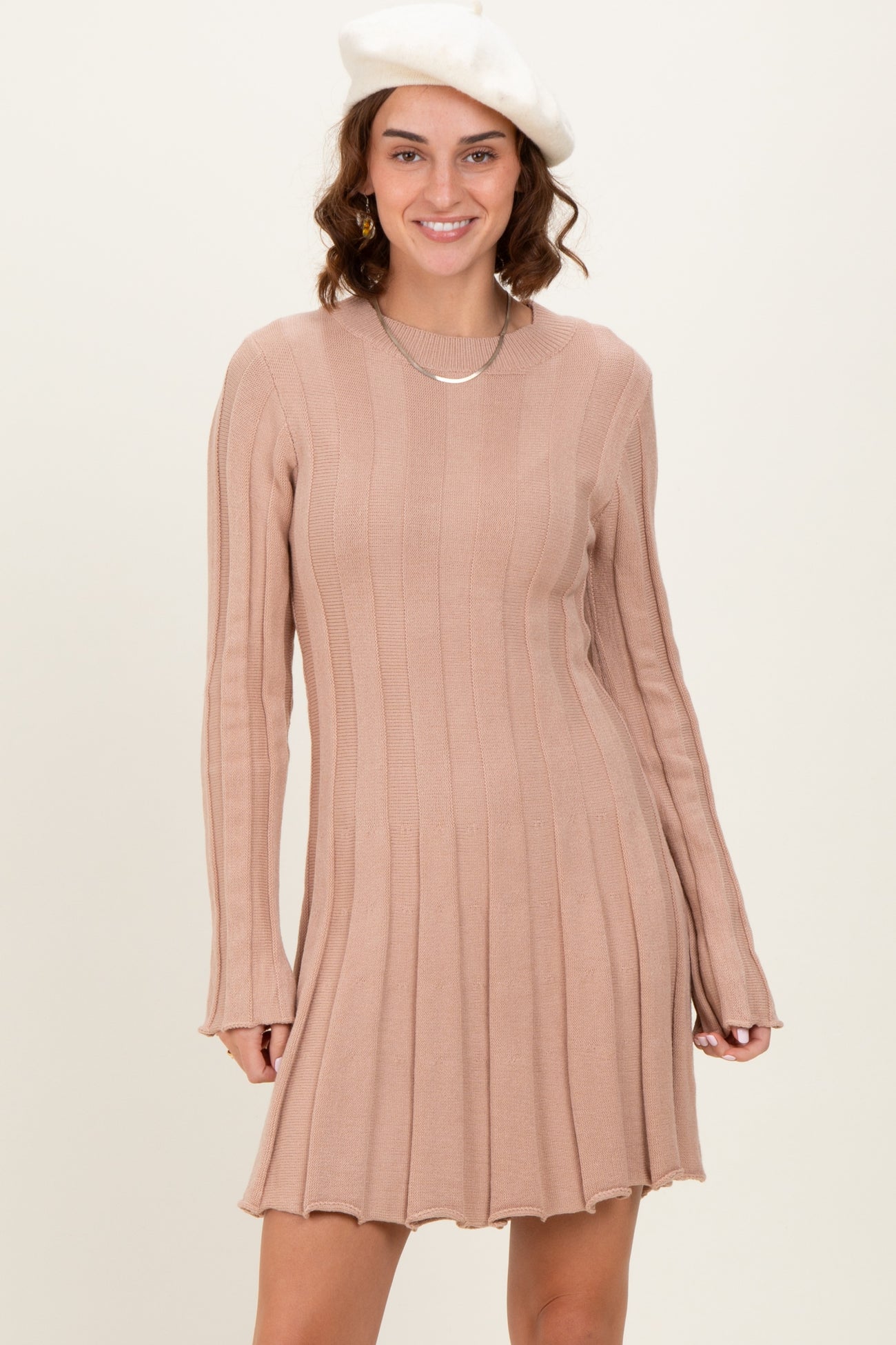 Embrace comfort and style with our Mocha Wide Rib Maternity Mini Dress. Designed to flatter your bump, this dress features a soft, wide rib knit that stretches gently for a perfect fit throughout your pregnancy. The mocha tone adds a warm, versatile touch, ideal for both casual outings and cozy evenings. With long sleeves, a classic crew neckline, and a flattering A-line silhouette, this mini dress ensures you look effortlessly chic while staying comfortable. Pair it with your favorite flats or boots for a stylish maternity look you’ll love. Perfect for every stage of motherhood!