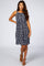 Nave Blue Ribbed Snap Button Front Fitted Midi Dress