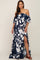 Navy Blue Floral Overlay Off-Shoulder Side Slit Maternity Maxi Dress