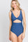 Navy Blue Ruched Sides Front Cutout One Piece Swimsuit