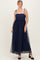 Navy Blue Square Neck Shoulder Tie Tulle Maxi Dress