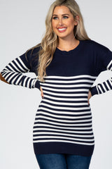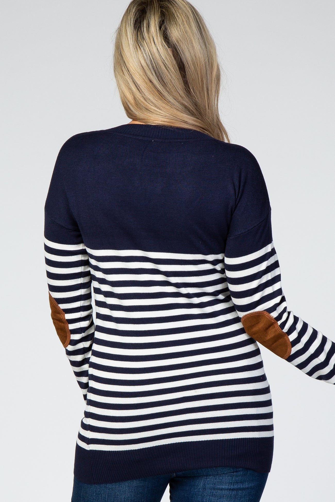 Navy Blue Striped Elbow Patch Knit Maternity Sweater