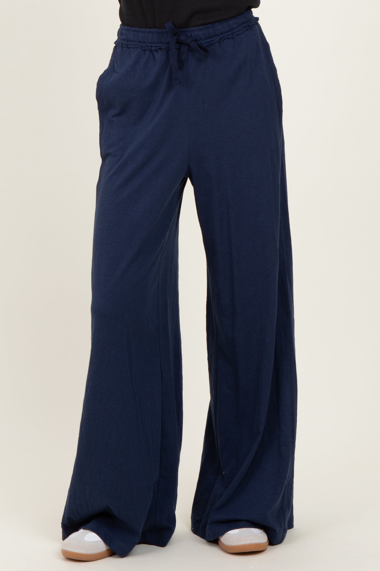 Navy Drawstring Wide Leg Lounge Pant