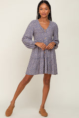 A floral tiered dress featuring long sleeves, a button down front and a v-neckline.
