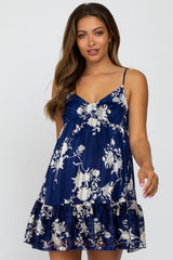 Navy Floral Striped Babydoll Maternity Mini Dress