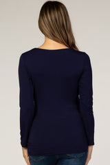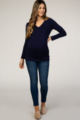 Navy Long Sleeve Ruched Fitted Maternity Top