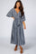 Navy Printed V-Neck Midi Dress
