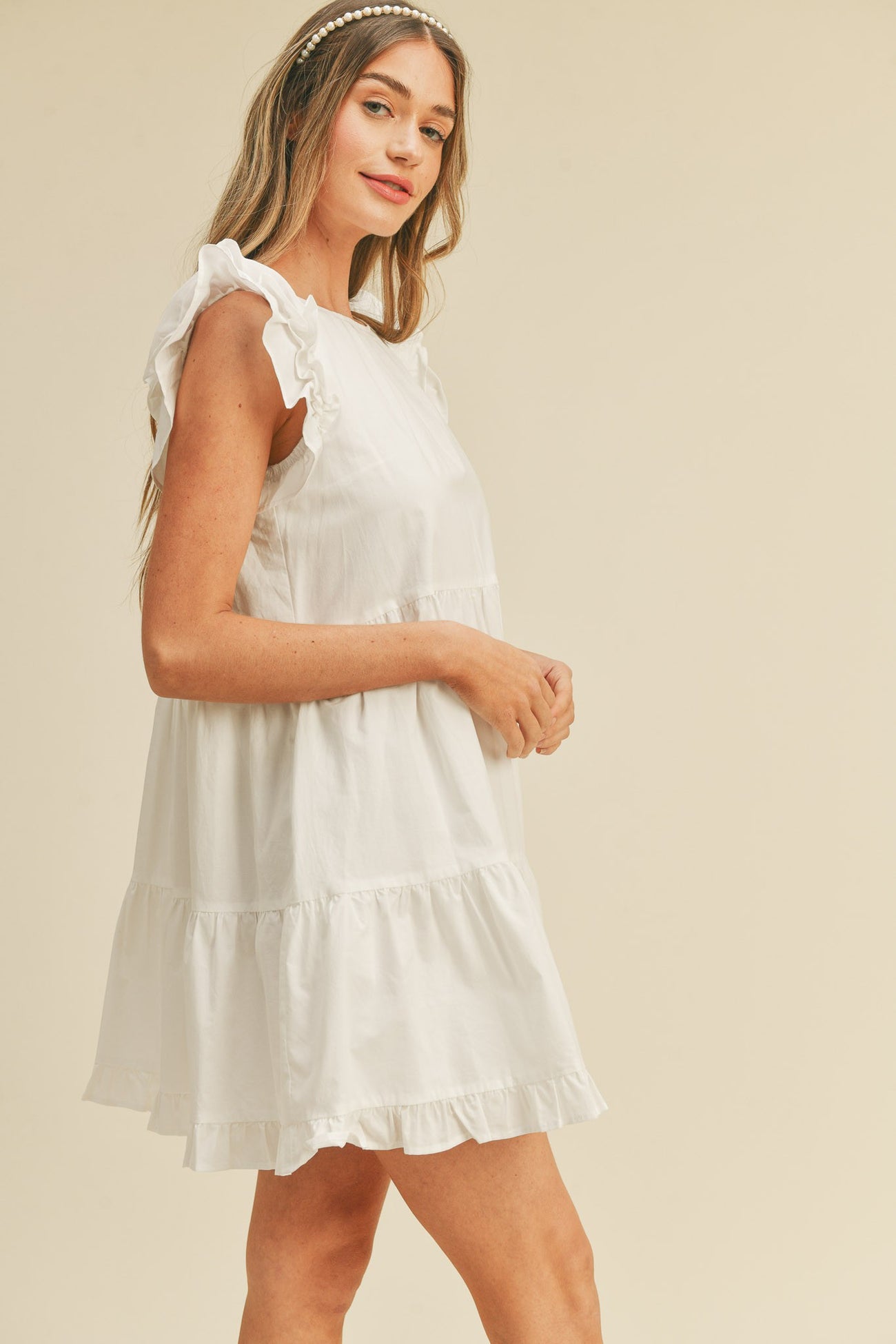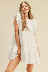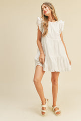 Off White Flutter Sleeve Tiered Babydoll Dress