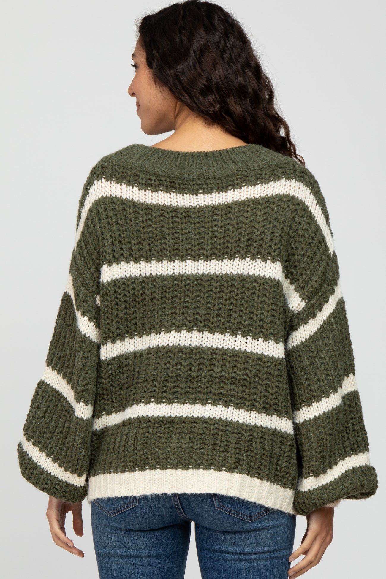 Details A striped chunky knit sweater with dropped shoulders and oversized sleeves. Content + Care